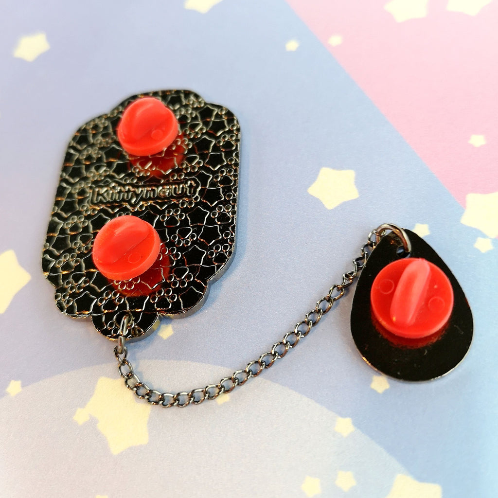 | Examples showing some defects - poor plating, dripped/overrun enamel | Examples of potential coloration issues -- these tend to be present only in certain specific batches. if you're unsure, send us a message. | Examples of common defects - scratches, pores, specks, and punctures. |
