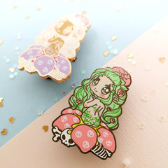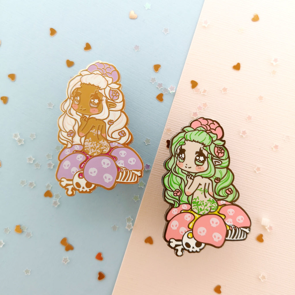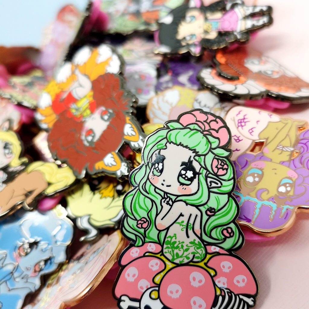 | Examples showing some defects - poor plating, dripped/overrun enamel | Examples of potential coloration issues -- these tend to be present only in certain specific batches. if you're unsure, send us a message. | Examples of common defects - scratches, pores, specks, and punctures. |