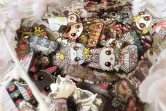 Examples showing some defects - poor plating, dripped/overrun enamel Examples of potential coloration issues -- these tend to be present only in certain specific batches. if you're unsure, send us a message. Examples of common defects - scratches, pores, specks, and punctures.