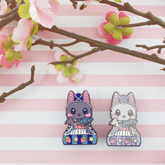Examples showing some defects - poor plating, dripped/overrun enamel Examples of potential coloration issues -- these tend to be present only in certain specific batches. if you're unsure, send us a message. Examples of common defects - scratches, pores, specks, and punctures.