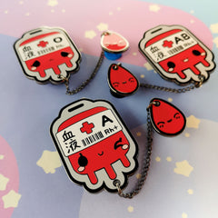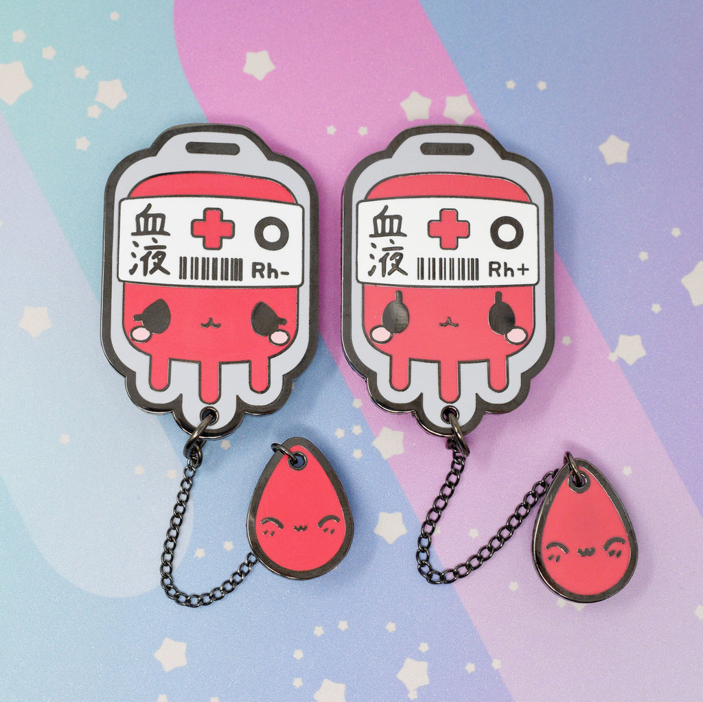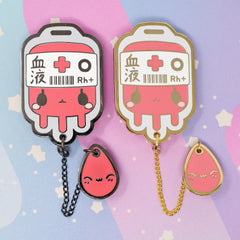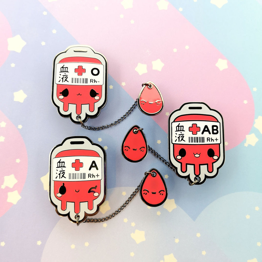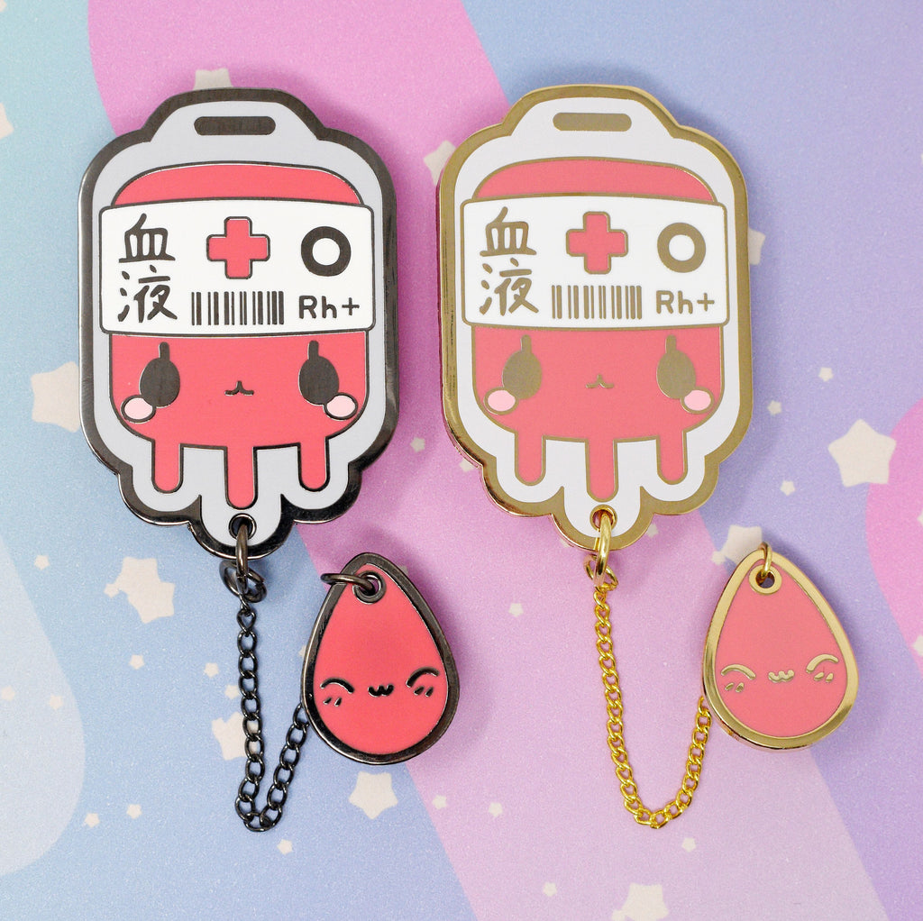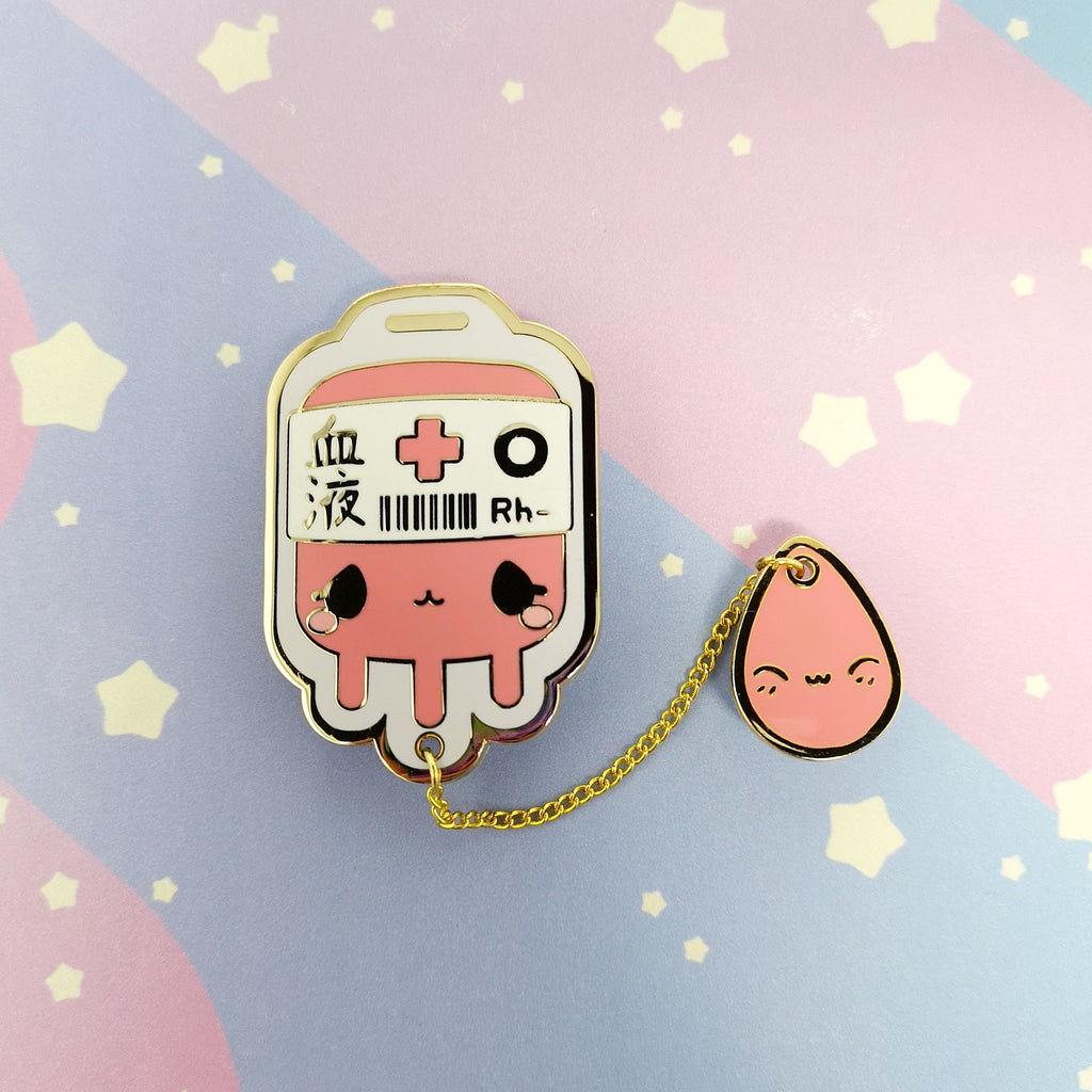 O+ Positive Blood Bag -- Hard Enamel Collar Pin -- Kawaii Medical Pins Series